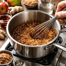 Taste the drink and adjust if necessary with an additional 10-20 g of maple syrup (if you prefer it sweeter) or a bit of lemon juice (if acidity is needed). Keep the drink hot on very low heat, but do not let it boil.