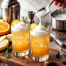 Store the base (syrup + juice) in the refrigerator in an airtight container for up to 24 hours. Aquafaba can be stored in the refrigerator in a tightly sealed jar for up to 48 hours, but it's best to whip it just before serving. Do not store the finished drink with foam for longer than 30–40 minutes, as the foam will lose its structure.