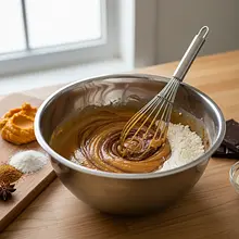 In a large bowl, sift 200g of all-purpose flour, 1.5 teaspoons of baking powder, half a teaspoon of baking soda, 2 teaspoons of cinnamon, 1 teaspoon of ginger, half a teaspoon of nutmeg, half a teaspoon of cloves, and a pinch of salt. Sifting will aerate the ingredients and prevent lumps from forming. Mix everything thoroughly with a whisk to evenly distribute the spices.