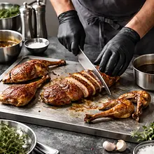 Check the temperature of the meat: thighs should reach 85°C inside (for a tender texture), and the breast should be 75–78°C for juiciness. If you want a crispier skin, turn on the grill function for the last 5 minutes of baking (watching closely). Serve with extra tablespoons of sauce and the skin drizzled with sauce.