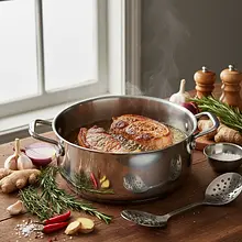 Here is a dish that proves that non-alcoholic beer is not just a beverage, but a full-fledged culinary ingredient capable of creating depth of flavor in exquisite dishes. Pork shoulder braised in dark non-alcoholic beer is a tribute to classic European stews, such as Belgian carbonnade flamande, in a modern, accessible version. The meat, first seared to achieve a rich, caramelized crust, is then slowly braised in a sauce made from dark, malty beer, caramelized onions, and aromatic wild mushrooms. The result is incredibly tender, fork-tender pork in a thick, glossy sauce with a complex, sweet-bitter flavor profile. As a counterpoint to the richness of the main dish, we serve velvety mashed potatoes with a sharp, pronounced accent of freshly grated horseradish. This dish is perfect for chilly days, Sunday lunch, or an elegant dinner, delighting with its taste and aroma, proving that great cuisine doesn't need alcohol.