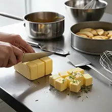 Take 125g of very cold butter out of the fridge. Cut it into small cubes (about 1x1 cm) and add it to the dry ingredients. Now the most important part: rub the butter into the flour with your fingertips until the mixture resembles wet sand or breadcrumbs. Try to do this quickly so that the butter doesn't warm up.