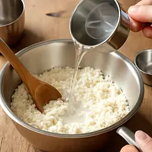 Pour 200–250 ml of very cold water into the flour and butter mixture gradually, starting with 200 ml. Stir with a wooden spoon or by hand until a thick, uneven, chunky dough forms (the dough does not need to be smooth). If the mixture is too dry after 200 ml, add the remaining 50 ml. The goal is to achieve a compact, slightly moist mass that holds together in uniform pieces but is not sticky.