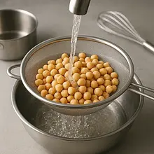 Preheat the oven to 200°C (fan). Wash the Hokkaido pumpkin, cut it in half, and use a spoon to remove the seeds and fibrous flesh. Cut the pumpkin into smaller pieces (quarters or eighths) and place them on a baking sheet lined with parchment paper, skin side down. Bake for 25-30 minutes, until the flesh is very soft – a fork should go into it without any resistance. Remove from the oven and set aside to cool slightly. When the pumpkin is cool enough to touch, separate the flesh from the skin using a spoon and transfer it to a large bowl. Mash the flesh thoroughly with a fork or potato masher until smooth.