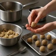 From the prepared mixture, form small balls in your hands the size of a walnut (about 3-4 cm in diameter). Try to make them all similar in size, so they cook evenly. You should get about 16-20 koftas. In a wide pot or deep pan, heat vegetable oil (about 500 ml) over medium heat. The oil should be at a temperature of about 170-180°C. If you don't have a thermometer, drop a small piece of the mixture in – if it immediately floats to the surface and starts to sizzle, surrounded by bubbles, the oil is ready. Carefully place the koftas in batches (4-5 at a time) to avoid lowering the oil temperature too much. Fry for 3-4 minutes, gently turning them halfway through frying, until they are evenly golden brown. Remove the fried koftas with a slotted spoon and place them on a plate lined with paper towels to drain excess fat.