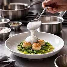 Prepare the syrup: peel the ginger thinly and cut it into thin slices (about 20 g). In a small saucepan, combine 100 g of sugar and 120 ml of water. Add the ginger slices and sprinkle in 0.05 g of saffron (a few threads). Bring to a gentle boil over medium heat, stirring with a wooden spoon, until the sugar completely dissolves (this will take about 3-4 minutes). Reduce the heat to low and simmer for 4-6 minutes to allow the ginger to release its flavor; the syrup should take on a golden color. Remove from heat and let cool for 15 minutes, then strain through a fine sieve into a glass bowl - the sieve will catch the pieces of ginger and saffron threads.