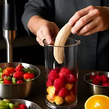 Blend on medium to high speed for about 45–60 seconds. After this time, stop the blender and check the consistency: the smoothie should be smooth and pourable, but not too runny. If there are larger pieces, blend for another 20–30 seconds. If the consistency is too thick, add 30–60 ml of cranberry juice or water and blend again for 10–15 seconds.