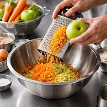 Grate the carrot and apple on a fine grater directly into a large bowl. Hold the grater steady, keeping the end of the vegetable away from the blade with your fingers. If the mixture is very watery (the apple may release a lot of juice), gently squeeze out the excess liquid with your hand or cheesecloth — leave a little moisture so the fritters are moist but not runny.