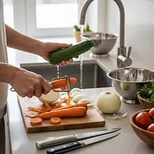 Start by preparing the vegetables. Peel the carrot and onion. Wash the zucchini, cutting off its ends. Grate the carrot, zucchini, and onion on the finest grater. The goal is for the vegetables to be almost invisible and to blend well with the meat. If the zucchini has released a lot of water, gently squeeze it in your hands.