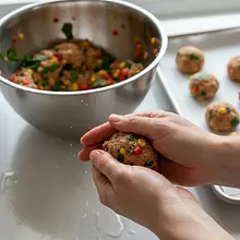 The best tools are your hands. The movements should be gentle, as if you were 'massaging' the meat. The mixture is ready when no separate ingredients are visible, and the whole has a uniform color.