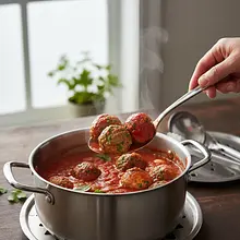 Critical moment: do not stir the meatballs for the first 10 minutes of cooking! They are very delicate and could fall apart. If you want to move them, gently shake the whole pot.