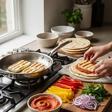 Now the most important moment – rolling. First, fold the bottom edge of the tortilla up, covering part of the filling. Next, while holding the bottom flap, fold in the left and right sides of the tortilla. Finally, starting from the bottom, roll the wrap tightly into a cylinder, making sure the side flaps stay inside. This way, the filling won't fall out from the bottom.