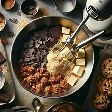 Add honey (80 g) and egg (60 g) to the butter and sugar. Mix the ingredients on low speed for about 1 minute until the mixture is smooth and slightly shiny. Add the dry spice mixture from step 2 and mix briefly again.