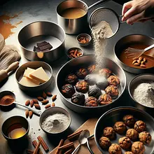 In a small bowl, mix the dry spices: cinnamon (10 g), ginger (5 g), cloves (2.5 g), baking powder (6 g), and salt (1 g). Make sure the mixture is uniform — use a teaspoon or whisk.