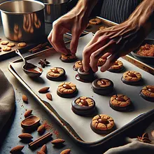 Coat the cooled cookies: one by one, dip the top half of the cookie in the glaze or spoon it on, so that an even layer forms. Place on a rack or parchment paper. If you are using optional toppings — immediately after glazing, sprinkle with orange zest (30 g), chopped pistachios (30 g), or a few flakes of sea salt (2 g). The glaze usually sets in 20-30 minutes at room temperature.
