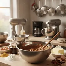 Prepare the liquid cake base. In a heavy-bottomed saucepan, place the butter, honey, and powdered sugar. Heat over low flame, stirring constantly with a wooden spoon, until all the ingredients dissolve and combine into a uniform, smooth mixture. Do not bring to a boil! The finished mixture should be warm and liquid. Remove the saucepan from the heat and set aside for about 15-20 minutes to cool. It must be lukewarm, not hot, before you add it to the flour.