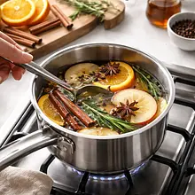 Place a pot on the stove over medium heat. Slowly heat the mixture, stirring occasionally with a wooden spoon, until it is very hot and small bubbles begin to form on the surface (just before boiling). When this happens, immediately reduce the heat to the minimum. Cover the pot with a lid, leaving a small gap, and let the drink gently simmer for about 15-20 minutes. During this time, the spices will release their aromas, filling the kitchen with a wonderful scent.