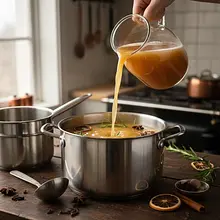 Pour the hot, aromatic cider into mugs or thick, heat-resistant glasses using a ladle. To make the drink look even more beautiful, you can add a fresh slice of orange, a small cinnamon stick, or a small sprig of rosemary to each vessel. Serve immediately to enjoy its warming power.