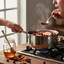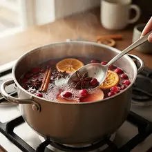 Cover the pot with a lid, leaving a small gap, and let the drink steep on the lowest heat for about 15-20 minutes. This time will allow the spices to fully release their aromas and flavors, which will infuse into the juices, creating a rich and complex composition.