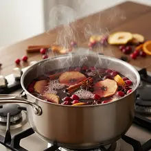 Place a pot on the stove over medium heat. Slowly heat the mixture until it becomes very hot and the first bubbles start to appear at the edges of the pot (temperature around 80°C). It is important not to let the drink come to a boil. As soon as you notice that the mulled drink is about to boil, immediately reduce the burner to the lowest setting. Cover the pot with a lid, leaving a small gap, and heat on very low for 20-25 minutes. This process, called hot maceration, will allow the spices and fruits to slowly release their full flavor and aroma into the liquid.