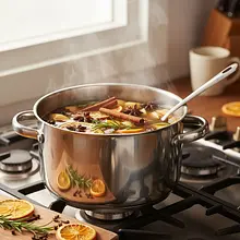 Place the pot on the stove over medium heat and slowly warm the mixture. Your goal is to bring the drink to the point where it is very hot and starts to steam, but it MUST NOT BOIL. When you see steam rising and small bubbles appearing at the edges of the pot, immediately reduce the burner to the lowest setting. Leave the mulled wine on low heat for about 15-20 minutes to allow the flavors and aromas of the spices to release and blend with the juice. Do not cover the pot.