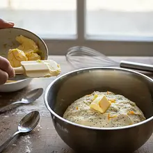 Start by preparing the yeast starter. In a small saucepan, heat 250 ml of milk to a temperature of about 37°C – it should feel pleasantly warm to the touch, like bath water for a baby, but not hot. In a large bowl, crumble fresh yeast, add a tablespoon of sugar, and pour in the warm milk. Gently mix with a fork, just until the yeast dissolves. Cover the bowl with a clean cloth and set it in a warm, draft-free place for 10-15 minutes. After this time, a thick, bubbly foam should appear on the surface, which is a sign that the yeast is active.