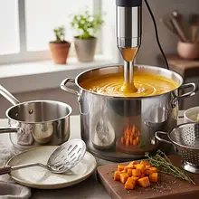 Zdejmij garnek z ognia. Używając blendera ręcznego (żyrafy), zmiksuj zupę bezpośrednio w garnku na idealnie gładki, aksamitny krem. Blenduj przez około 2-3 minuty, poruszając blenderem w górę i w dół, aby napowietrzyć zupę i pozbyć się wszystkich grudek. Jeśli używasz blendera kielichowego, odczekaj chwilę aż zupa lekko przestygnie, przelej ją partiami do kielicha (napełniając go maksymalnie do połowy) i blenduj, uchylając lekko pokrywkę, aby para mogła uchodzić.