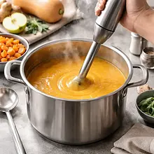 Turn off the heat. Using an immersion blender, blend the contents of the pot directly in it until you achieve a smooth, silky consistency. If you are using a countertop blender, pour in batches into the blender container (fill up to 2/3 full), cover with a cloth, and blend to avoid an explosion of hot liquid. Check the consistency: the soup should be thick but liquid — if it is too thick, add 100–200 ml of hot broth and mix. Add lemon juice (20 ml) and the remaining salt and freshly ground pepper to taste (taste after 1/2 teaspoon). Before serving, add chopped sage leaves (you can sauté them in a dry pan for 30 seconds with a little oil until crispy) and gently mix.