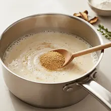Start by preparing the yeast starter. In a small saucepan, heat 100 ml of milk to a temperature of about 37°C - it should feel pleasantly warm to the touch, like bath water for a baby, but not hot. Crumble fresh yeast into a small bowl, add a teaspoon of sugar, and pour in the warm milk. Mix thoroughly with a fork until the yeast is completely dissolved. Cover the bowl with a cloth and set it in a warm place (e.g., near a radiator or in a slightly preheated oven) for about 10-15 minutes. After this time, a thick, bubbly foam should appear on the surface - this is a sign that the yeast is active and ready to work.