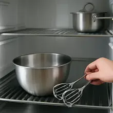 Chill the bowl and the mixer whisks in the fridge for 10 minutes (cold tools whip cream better). Pour 600 ml of heavy cream into the chilled bowl and beat with a mixer on medium speed for about 4–6 minutes, until the cream starts to thicken and forms soft peaks — when you lift the whisk, the peak should hold but its tip should droop slightly. Be careful not to overwhip it — excessive whipping will turn it into butter.