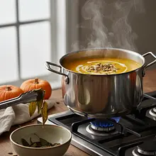 Pour the hot soup into bowls or deep plates. Garnish each serving with a few crispy sage leaves. Additionally, if using, sprinkle toasted pumpkin seeds on top for extra crunch. Serve immediately, preferably with a piece of fresh, crusty bread.