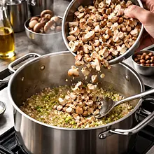 Start by preparing all the ingredients. Peel the onion, carrot, and parsley root. Chop the onion into small cubes, and slice or dice the carrot and parsley root. Peel the garlic and finely chop it or press it through a garlic press. If you are using fresh boletus mushrooms, clean them thoroughly with a brush or a damp cloth (avoid washing under running water, as they will soak up moisture), and then cut them into smaller pieces. You do not need to thaw frozen mushrooms beforehand.
