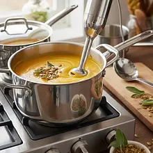 Remove the pot from the heat. Use an immersion blender (stick blender) to blend the soup directly in the pot until it is perfectly smooth and velvety. Blend for a few minutes, moving the blender up and down to ensure there are no lumps. If you don't have an immersion blender, pour the soup in batches into a countertop blender and blend. Be sure not to fill the jar more than halfway and slightly open the lid to allow steam to escape.