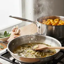 Cooking gnocchi and preparing the sauce
