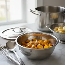 While the pumpkin is baking, prepare the gnocchi. In a large pot (at least 4 liters), bring about 3 liters of water to a boil. When the water starts to boil, add a generous pinch of salt (about 1 teaspoon). Drop the gnocchi into the boiling water and gently stir with a wooden spoon to prevent them from sticking to the bottom.