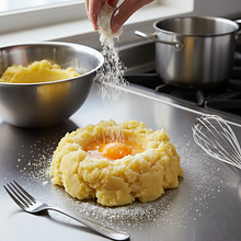 Do przestudzonych, przeciśniętych ziemniaków dodaj przesianą mąkę, jajko oraz solidną szczyptę soli. Opcjonalnie możesz dodać świeżo startą gałkę muszkatołową. Zacznij delikatnie łączyć składniki za pomocą widelca lub skrobki do ciasta, a następnie szybko zagnieć rękoma, tylko do momentu, aż składniki się połączą i powstanie gładkie, miękkie ciasto. Ciasto powinno być zwarte, ale wciąż lekko lepkie.