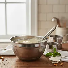 A metal container conducts cold more quickly, which promotes better freezing of ice cream. You can also use a plastic container with a lid designed for freezing.