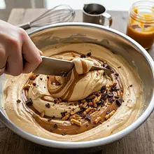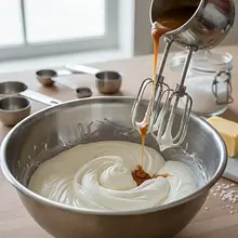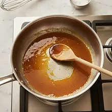 To prepare the caramel, start by pouring the sugar into a saucepan with a thick, light-colored bottom. Spread it out in an even layer. Place the saucepan on a medium heat burner. Do not stir the sugar with a spoon! Allow it to melt quietly. You can only gently swirl the entire saucepan to distribute the heat evenly. The sugar will begin to melt from the edges, forming a liquid. Patiently wait until all the sugar has dissolved and has taken on a beautiful amber color. This may take 5-8 minutes. Be careful not to burn it, as it will become bitter.
