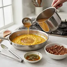 Start by preparing the pumpkin puree. Preheat the oven to 200°C (fan). Wash the hokkaido pumpkin thoroughly, cut it in half, and use a spoon to remove the seeds and fibrous flesh from the inside. Cut the pumpkin into smaller pieces (e.g., into eighths). You do not need to peel the skin. Place the pumpkin pieces on a baking sheet lined with parchment paper, drizzle lightly with oil, and bake for about 25-30 minutes, until the flesh is very soft (check with a fork - it should go in easily).