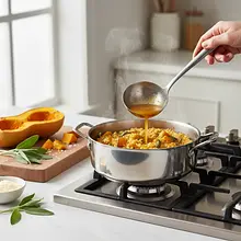 To danie to kwintesencja jesieni zamknięta w jednym talerzu. Kremowe, otulające risotto z ryżu Arborio, przygotowane na bazie aromatycznego bulionu warzywnego, zyskuje głębię smaku dzięki słodkiemu purée z pieczonej dyni piżmowej. Każdy kęs to idealny balans słodyczy dyni, ziemistego aromatu chrupiącej szałwii i orzechowej nuty prażonych orzechów laskowych. Danie pochodzi z północnych Włoch, gdzie risotto jest prawdziwą sztuką kulinarną, wymagającą cierpliwości i miłości. Jego aksamitna konsystencja, uzyskana dzięki technice 'mantecatura' (mieszania z masłem i parmezanem), sprawia, że jest to potrawa niezwykle satysfakcjonująca i elegancka. Wizualnie prezentuje się zjawiskowo – głęboki, pomarańczowy kolor ryżu kontrastuje z ciemną zielenią smażonych listków szałwii i złotem orzechów. Idealnie sprawdzi się jako danie główne na romantyczną kolację, uroczysty obiad z przyjaciółmi lub po prostu jako sposób na poprawę nastroju w chłodny dzień. Podawaj je ze schłodzonym białym winem, którego użyto do gotowania, aby dopełnić doznania smakowe.