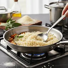Wsyp na patelnię suchy ryż Arborio. Zwiększ ogień i mieszaj energicznie przez około 1-2 minuty. Ten proces nazywa się 'tostatura'. Zobaczysz, jak ziarenka ryżu stają się na brzegach półprzezroczyste, a w środku pozostają białe, jak małe perełki. Dzięki temu ryż zachowa swój kształt i nie rozgotuje się na papkę.
