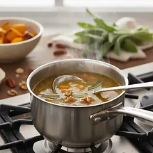 Przykryj garnek i odstaw risotto na 1-2 minuty, aby 'odpoczęło'. W tym czasie na małej patelni rozpuść łyżkę masła, dodaj listki szałwii i smaż przez 1-2 minuty na średnim ogniu, aż staną się chrupiące i aromatyczne. Uważaj, aby ich nie spalić.