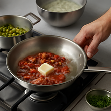 In a pan with aromatic butter and garlic, add the cooked and drained broad beans (peeled or in their pods). Slightly increase the heat and gently toss or stir everything for about 1-2 minutes, so that each bean is coated in the buttery sauce and heated through.