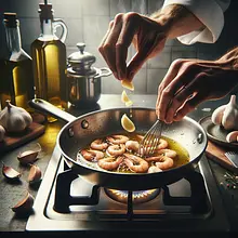 Garlic shrimp is a classic Spanish appetizer known as gambas al ajillo — simple, aromatic, and served hot. It has an intense flavor of garlic and olive oil, a delicate spiciness (optionally with chili), and a fresh hint of parsley and lemon. It works great as tapas with wine or as an impressive appetizer at a party; it looks appetizing in a small cast-iron skillet or on a porcelain plate, bathed in golden sauce, served with crispy baguette for dipping.