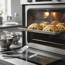 Place the tray with the pastries in the preheated oven. Bake for about 15-20 minutes, until the pastries rise beautifully, puff up, and take on a deep golden-brown color. Remove the baked pastries from the oven and let them cool for a moment on the tray, then transfer them to a rack to cool completely.