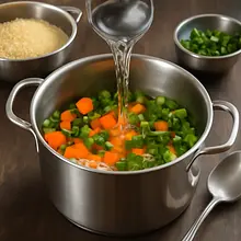 If you are using dried mushrooms, place 15 g of dried mushrooms in a bowl and pour 300 ml of hot, but not boiling water (about 80°C) over them. Let it sit for 20-30 minutes until the mushrooms swell and soften. After soaking, remove the mushrooms, gently squeeze them, cut them into smaller pieces, and keep the soaking liquid, strained through a fine sieve or cheesecloth (it will be an intense part of the broth).