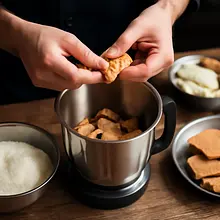Crush the biscuits into small pieces: place them in a blender and pulse for 10–20 seconds until you achieve a fine, but still slightly grainy sand. If you don't have a blender, place the biscuits in a sealed bag and hit them with a rolling pin for 1–2 minutes until they are fine.