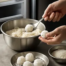 Cover the bowl with plastic wrap and place it in the refrigerator for 20–30 minutes. Chilling will make it easier to shape the balls — the mixture will become less sticky and more pliable.