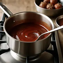 After braising, remove the lid and cook on very low heat for 1-2 minutes uncovered, so that the sauce thickens a bit and nicely coats the meatballs. If you want a more intense shine, gently increase the heat for 1 minute, stirring constantly.