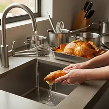 Piersi z kurczaka osusz bardzo dokładnie papierowym ręcznikiem. To ważny krok, który pomoże glazurze lepiej przylgnąć do mięsa. Umieść kurczaka w osobnej, czystej misce. Wylej na niego około 2/3 przygotowanej glazury. Używając pędzelka kuchennego lub dłoni, dokładnie rozprowadź glazurę po całej powierzchni każdej piersi, z obu stron. Pozostałą 1/3 glazury zachowaj na później – przyda się pod koniec pieczenia.
